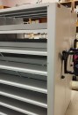 Архив включает документы разных форматов — А4 и А5, что потребовало разного количества полок на стеллажах. Быстросъёмные клипсы позволяют сотрудникам самостоятельно менять конфигурацию полок при изменении структуры фонда, без привлечения специалистов и остановки работы архива.