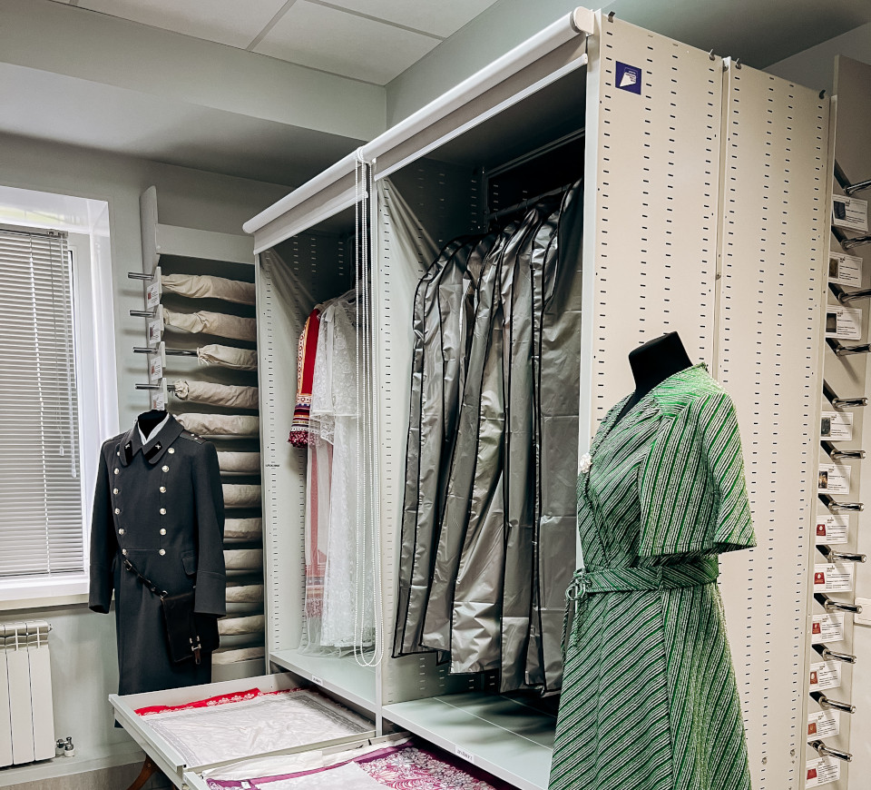 Изготовим передвижные стеллажи для хранения одежды на складе или в фондах музея с доставкой с завода производителя в города Чувашии и России.