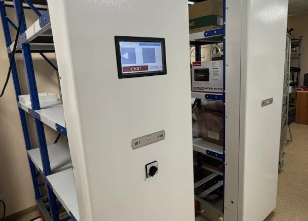 Этот тип передвижных стеллажей для склада оснащен электроприводом и управляется компьютерной АРМ системой. Это современное и технологичное решение.